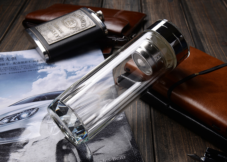阿慧石磨坊定制高檔鉆石水晶杯 雙層玻璃杯