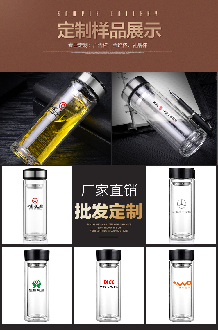 蘭州大學圖書館定制雙層玻璃杯商務禮品杯子