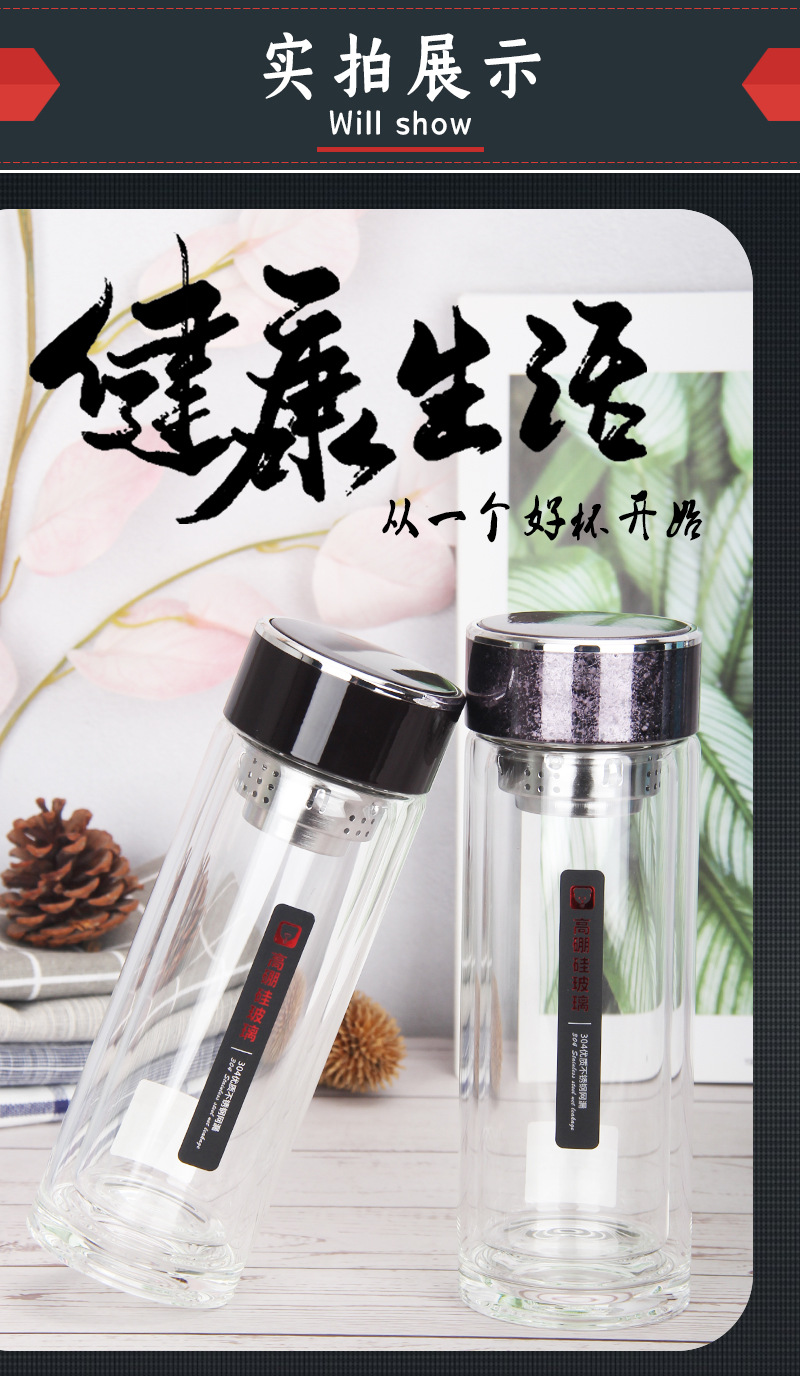 424雙層加厚隔熱水晶玻璃杯高硼硅禮品杯廠家批發(fā)廣商務(wù)水杯