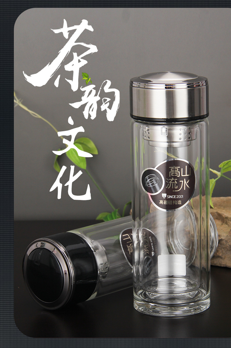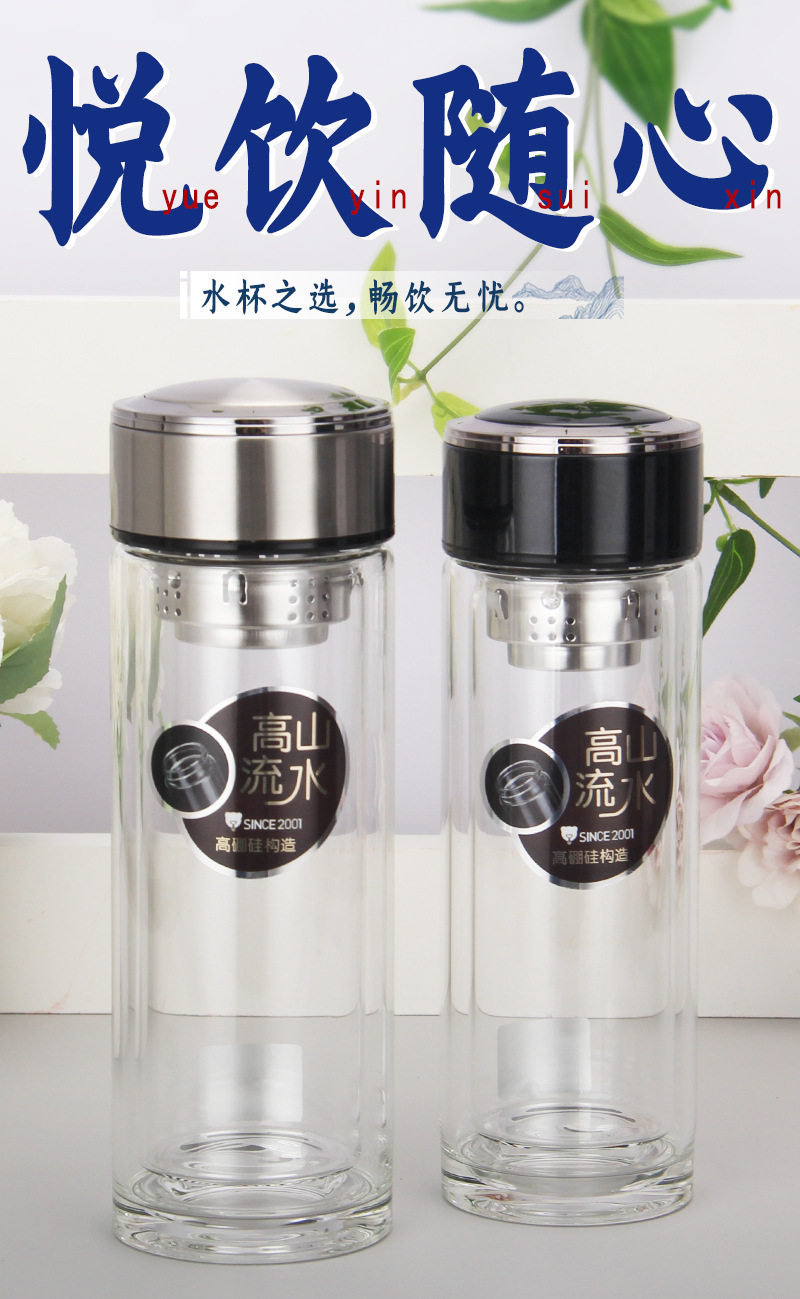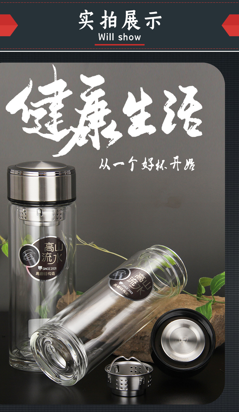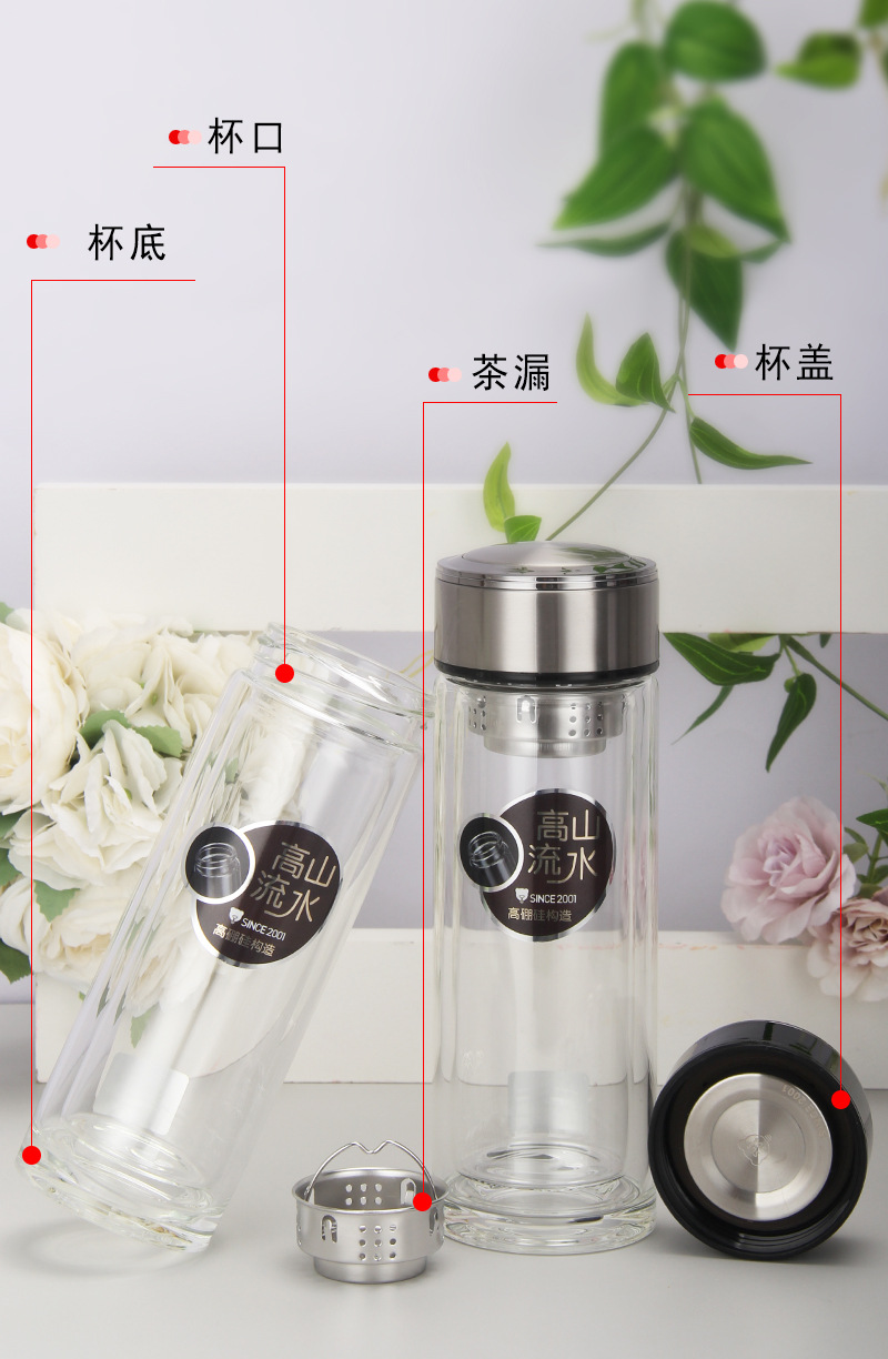 廠家批發定制LOGO 雙層高硼硅杯 厚底水晶杯