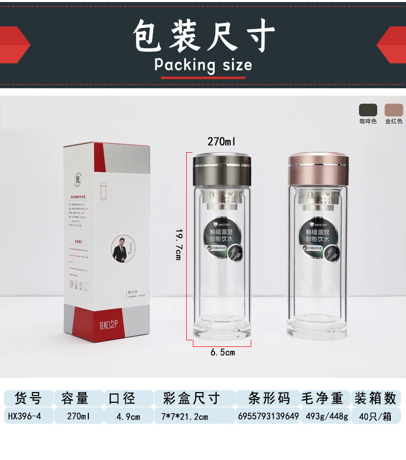智能顯示雙層玻璃杯