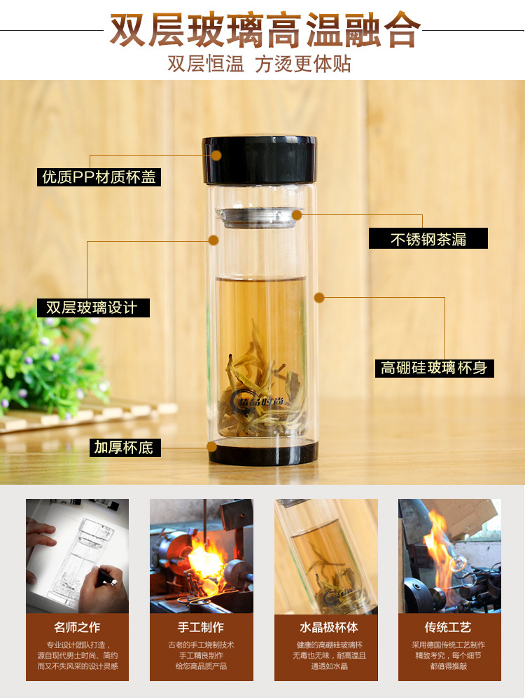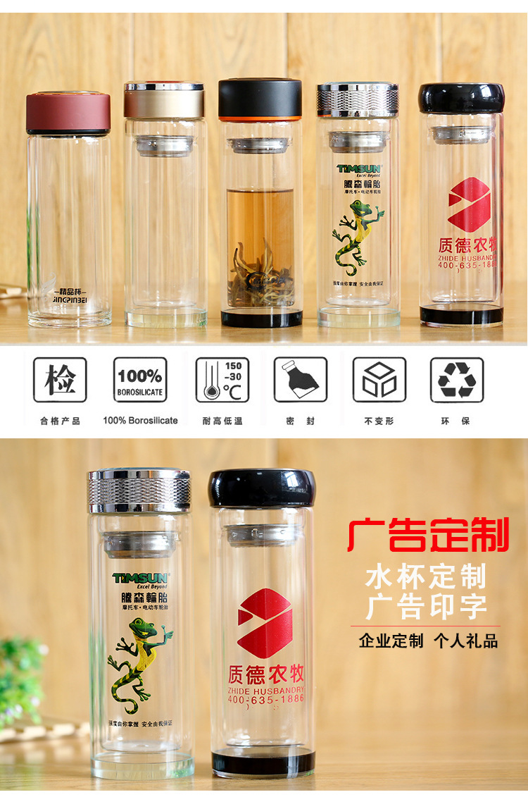 廠家定制玻璃杯 耐高溫雙層加厚水晶杯 商務茶杯禮品廣告杯印logo