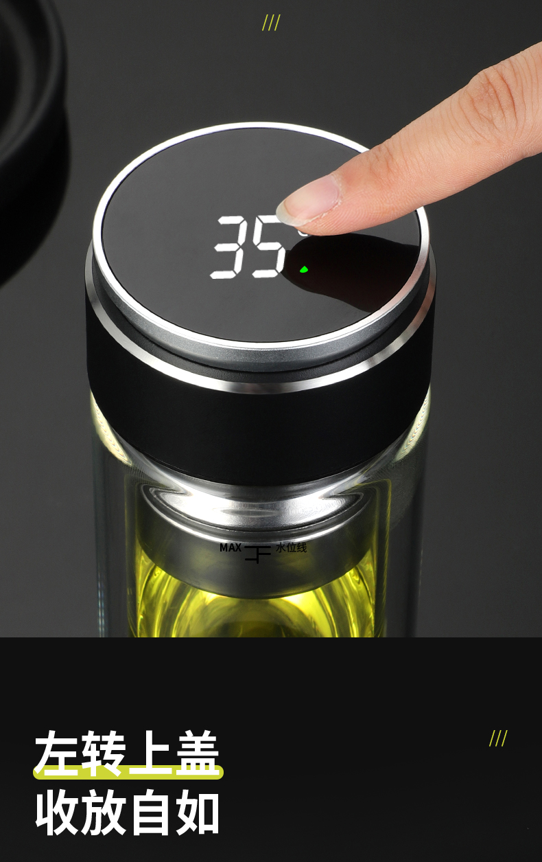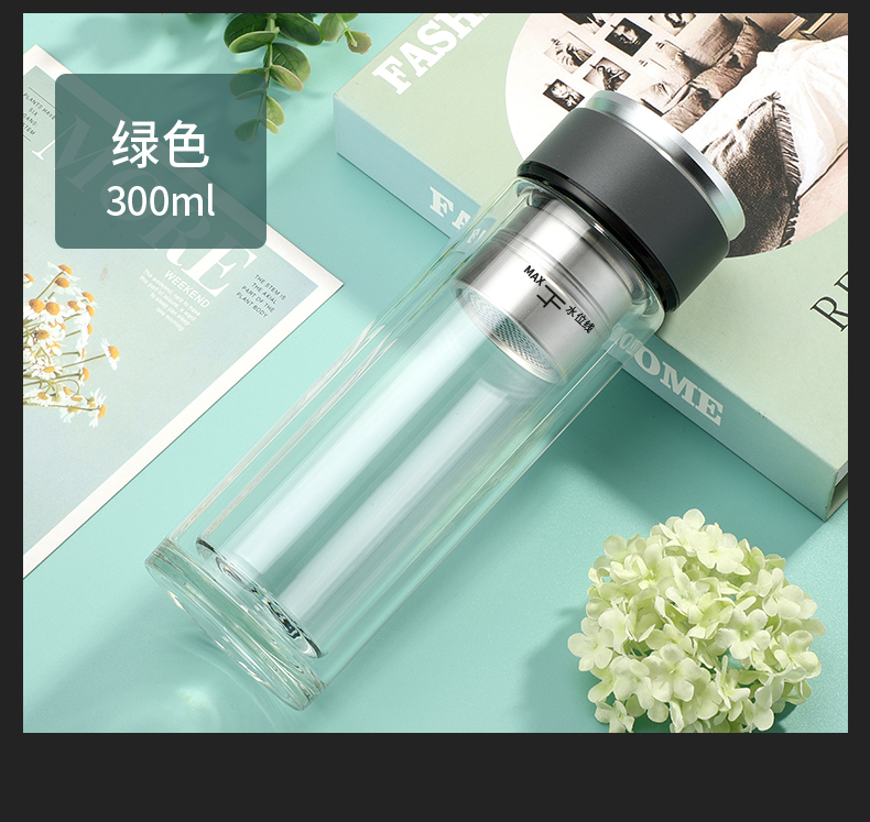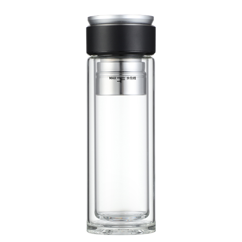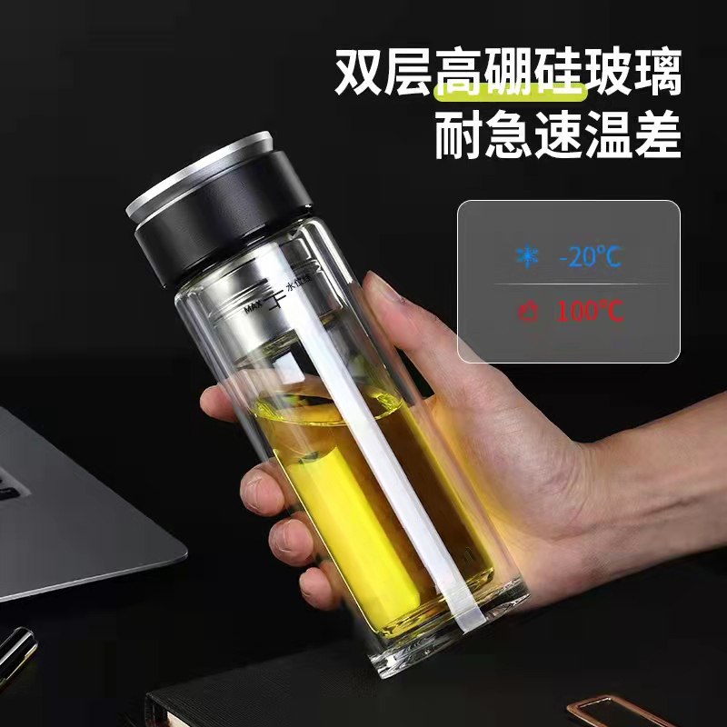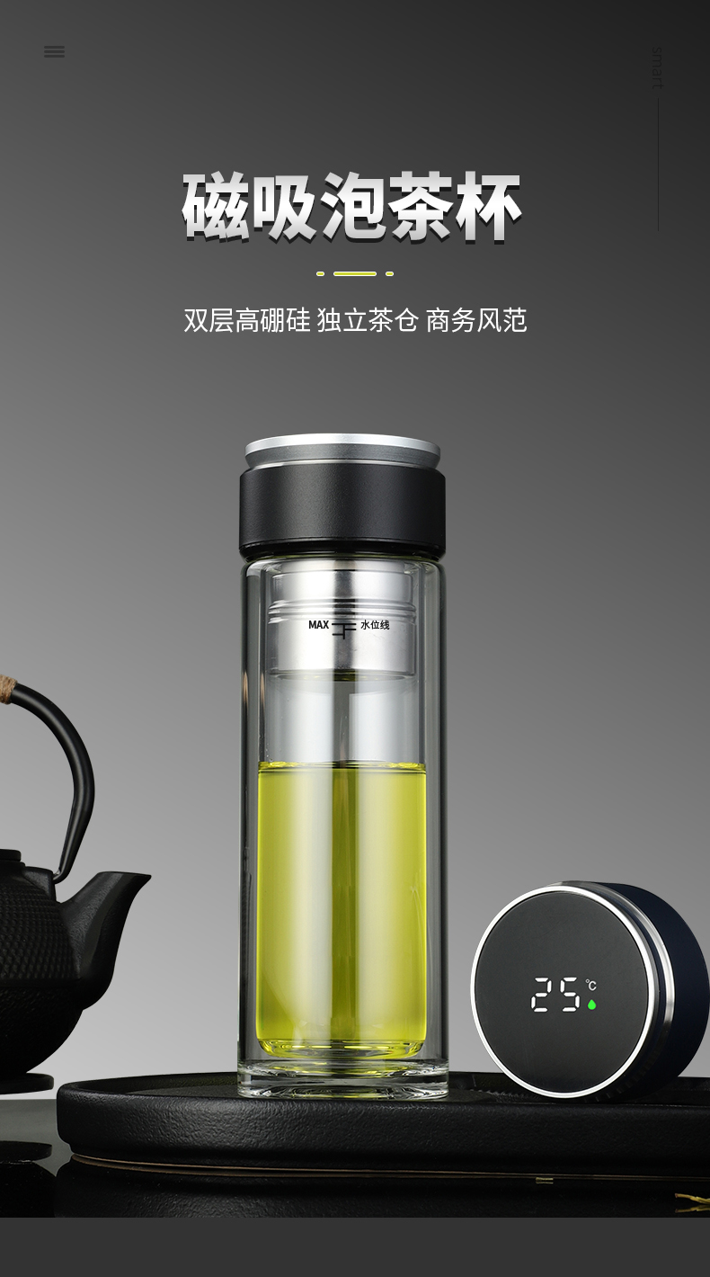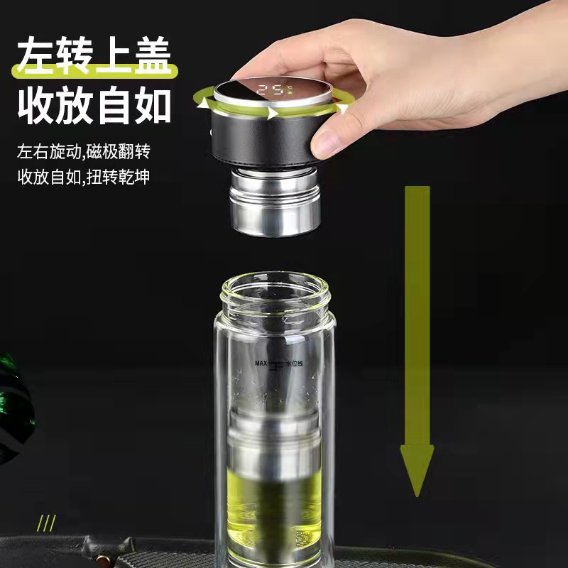 高檔智能磁吸茶水分離泡茶杯雙層透明便攜隔熱水杯水晶商務玻璃杯