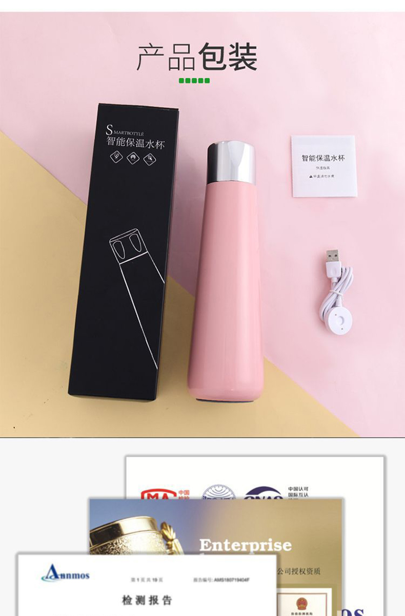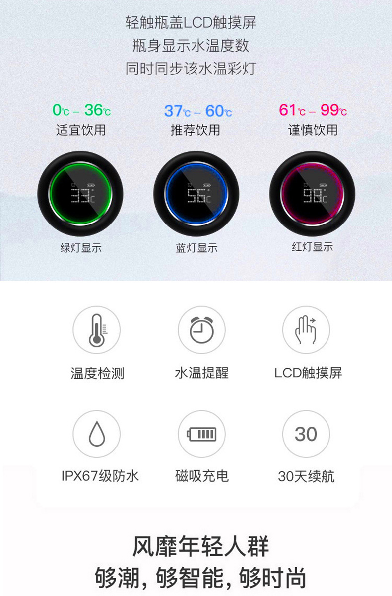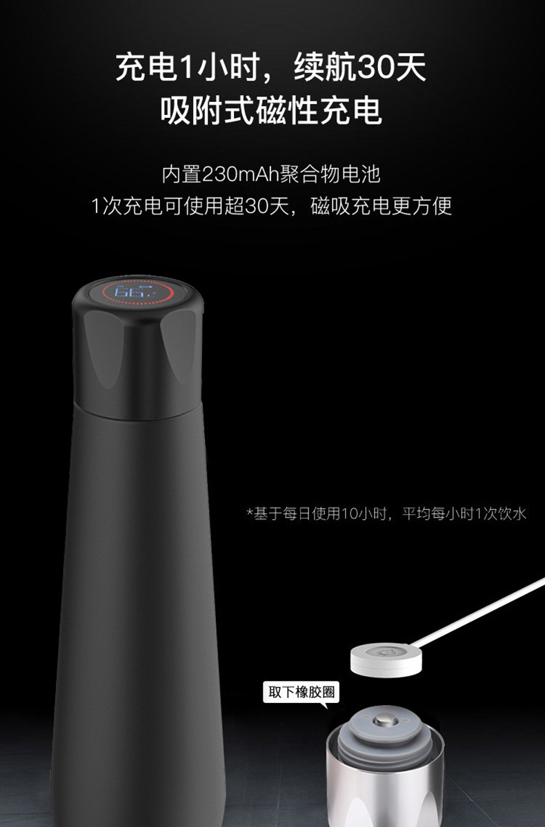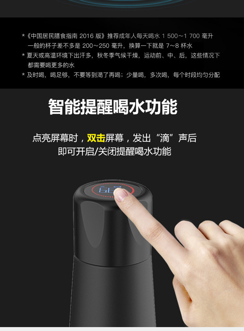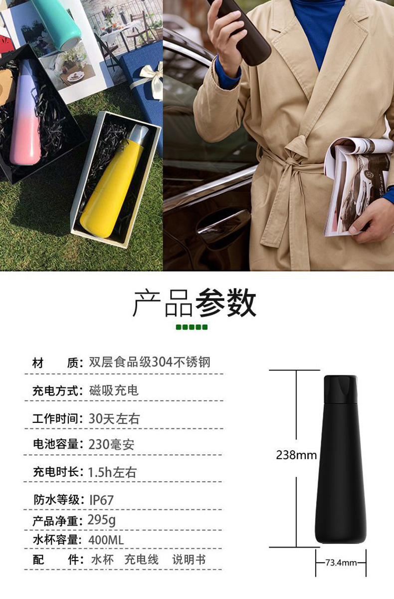 新款可充電觸屏顯溫定時提醒智能杯定制刻字