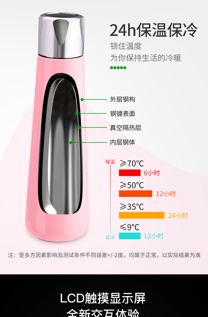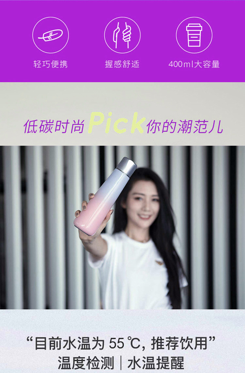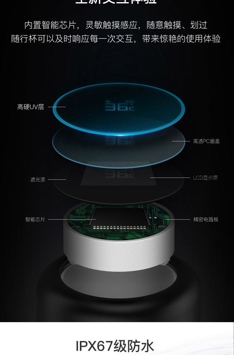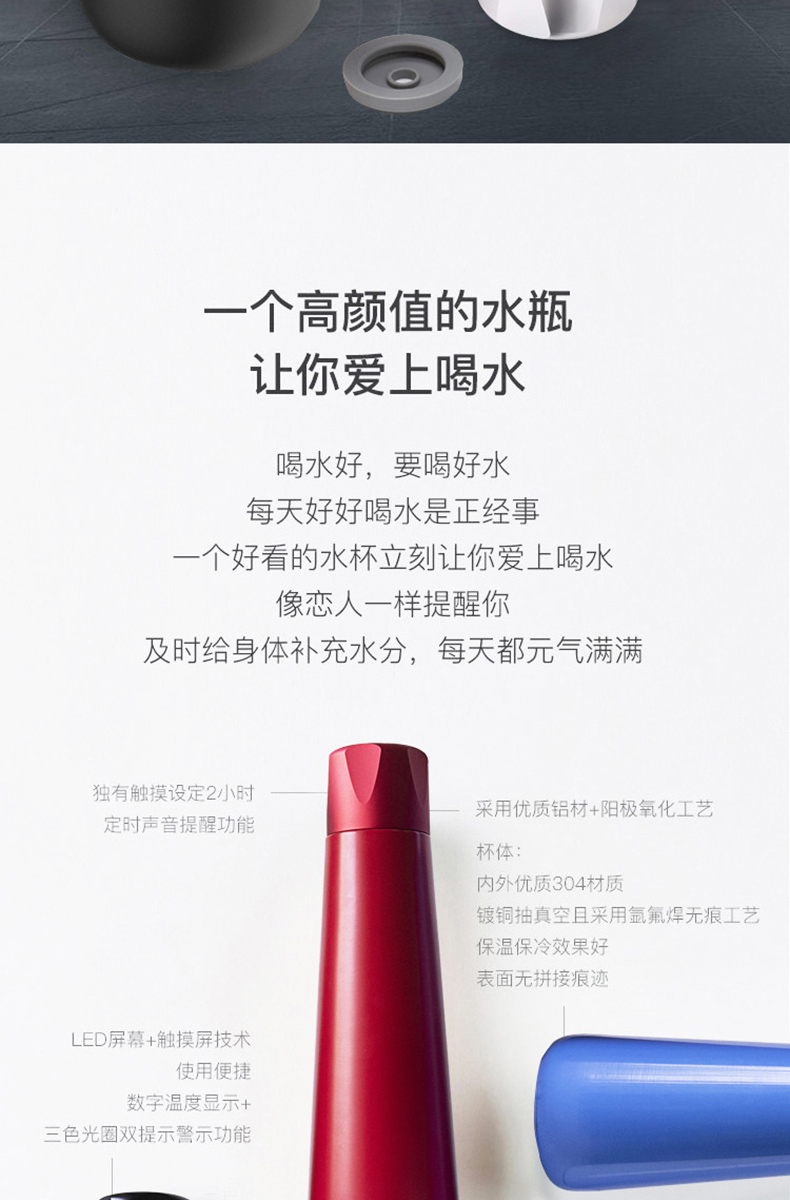 新款可充電觸屏顯溫定時提醒智能杯定制刻字
