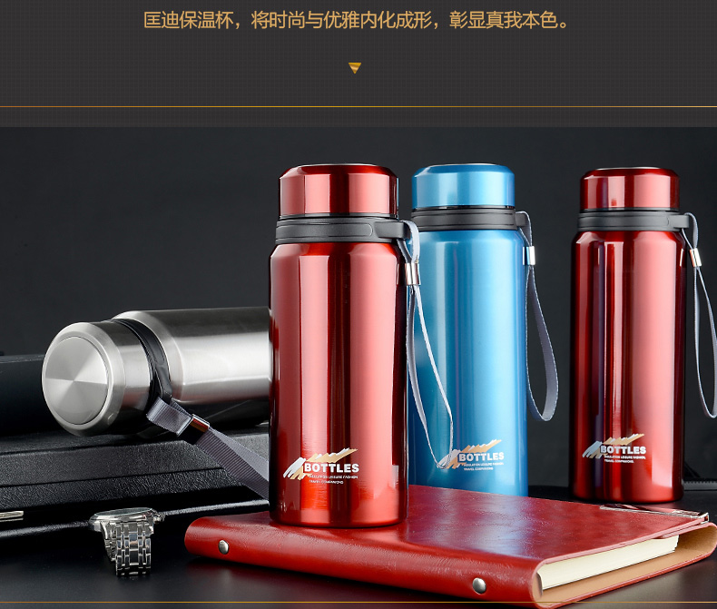 真空保溫杯創(chuàng)意禮高檔不銹鋼子彈頭戶外隨行吊帶定制水壺杯子