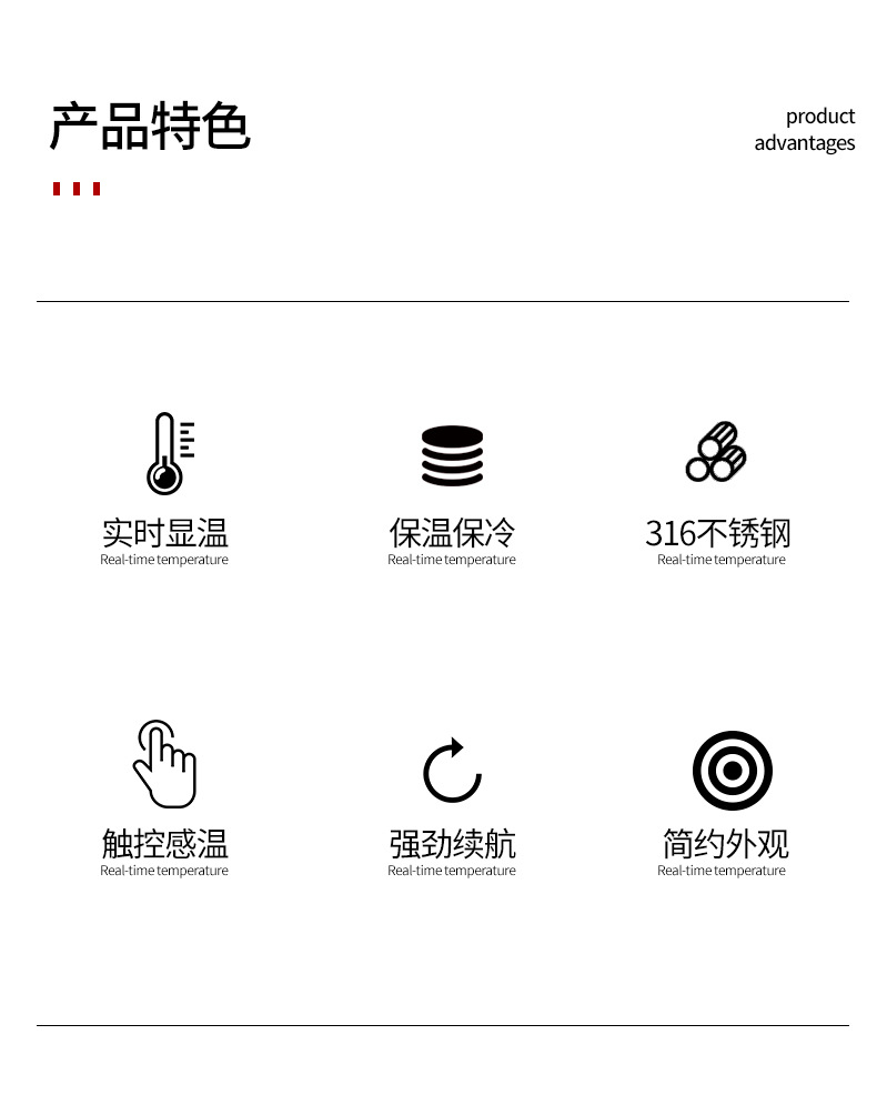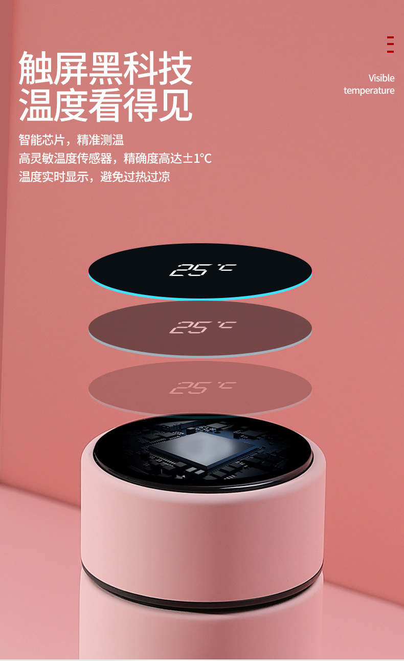 智能保溫杯觸摸顯示LED溫度水杯316不銹鋼智能保溫杯定制禮品定制