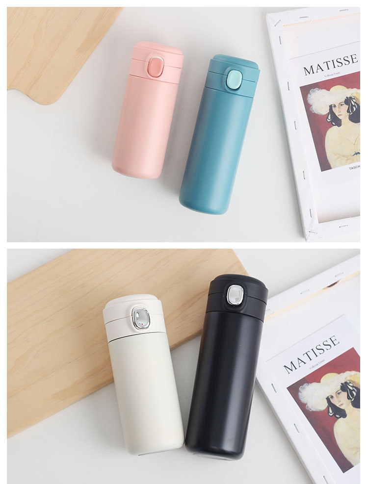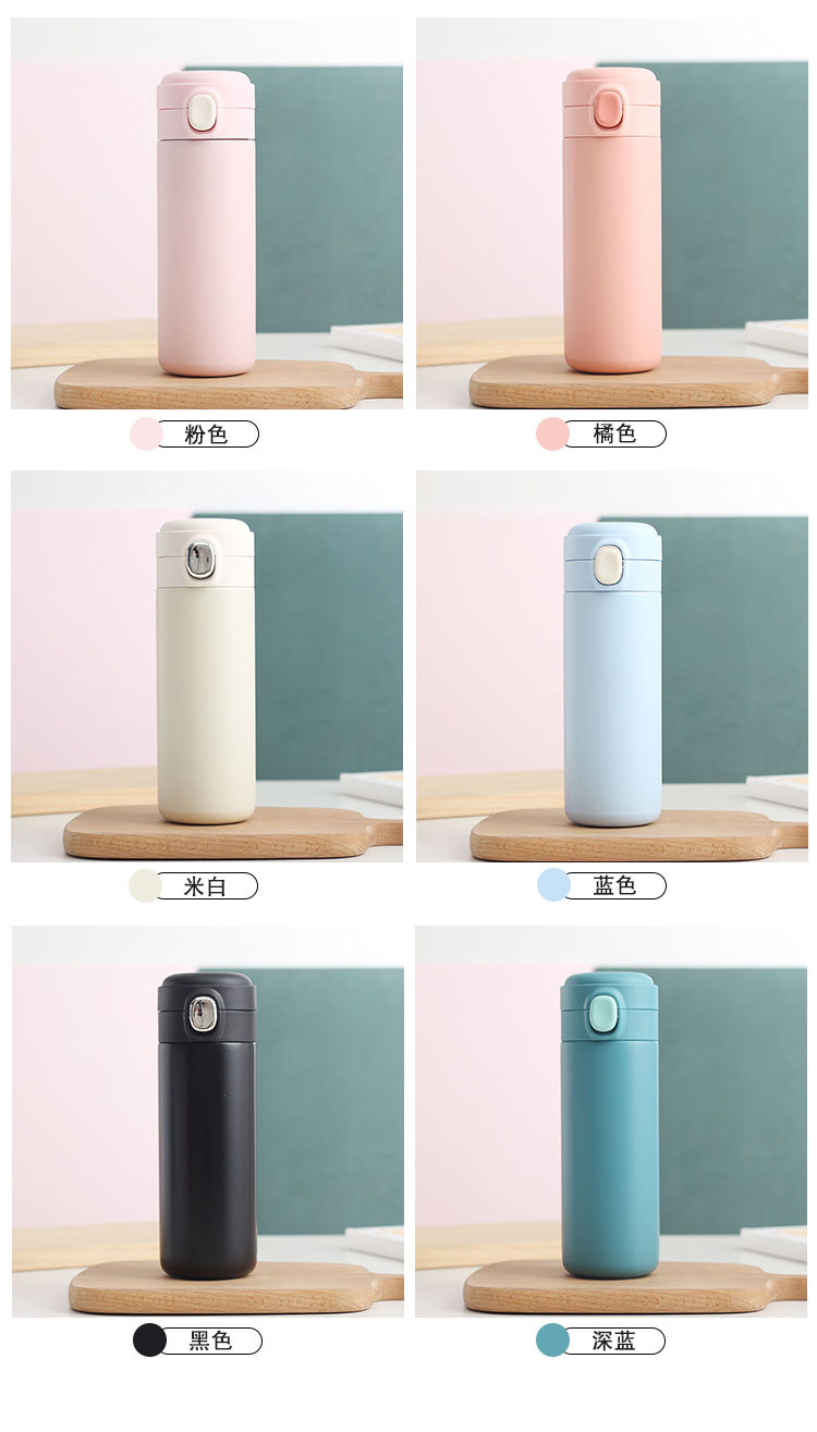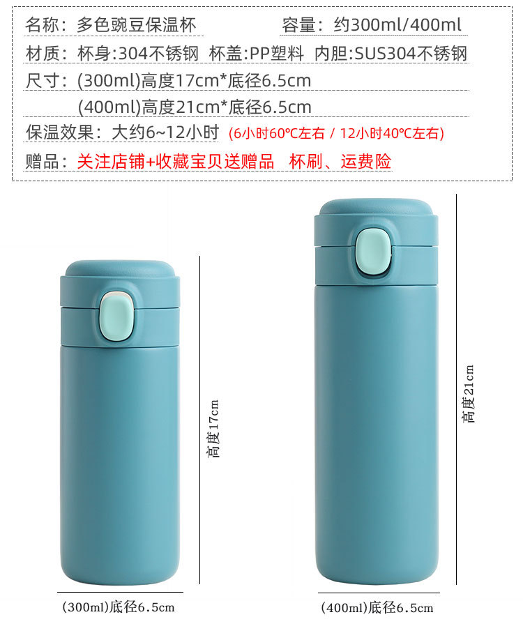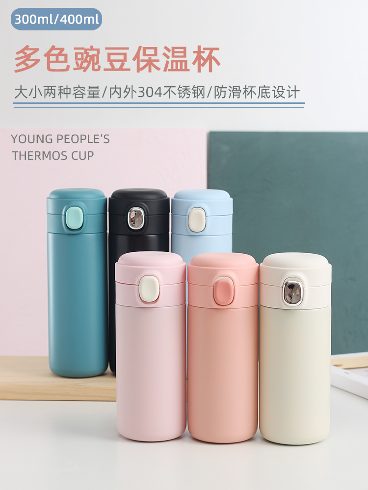 新款彈跳鎖扣不銹鋼真空雙層保溫杯豌豆杯子禮品定制水杯批發(fā)