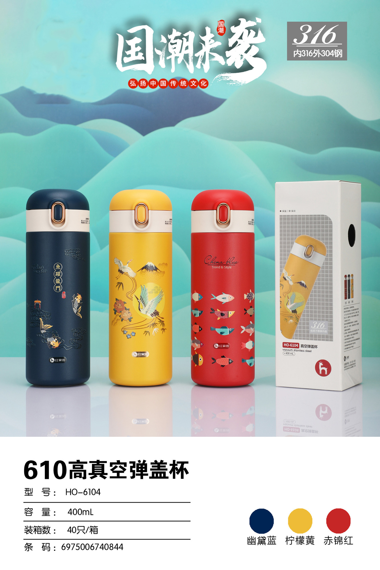 316不銹鋼真空保溫杯中國風潮彈蓋車載杯LOGO