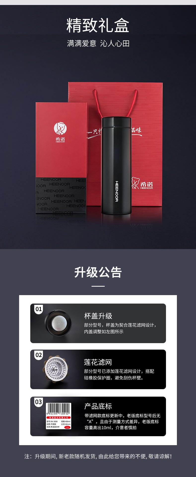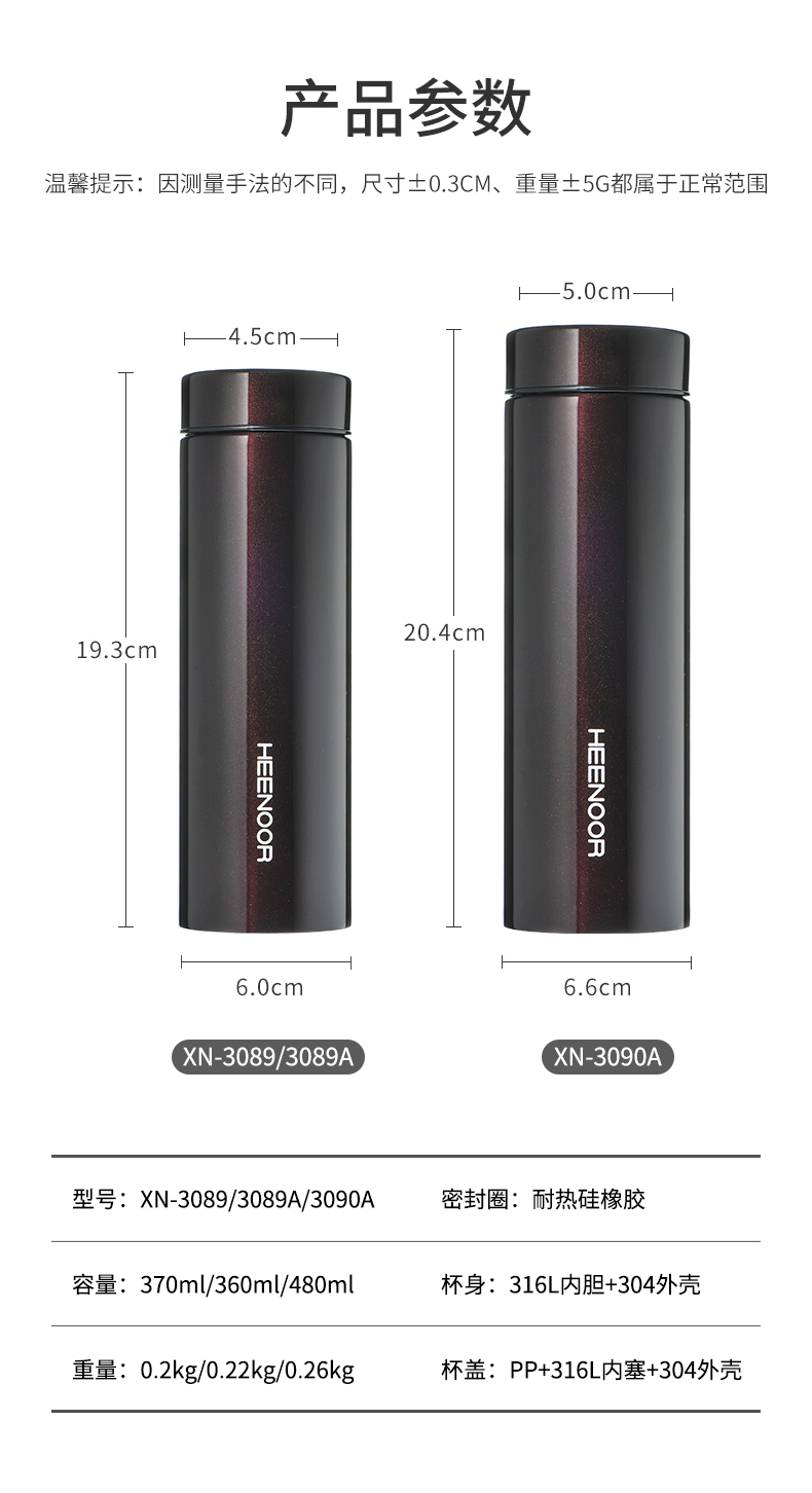 希諾旗艦店保溫杯男316L不銹鋼輕量便攜水杯車載高檔商務(wù)辦公茶杯