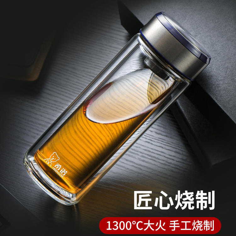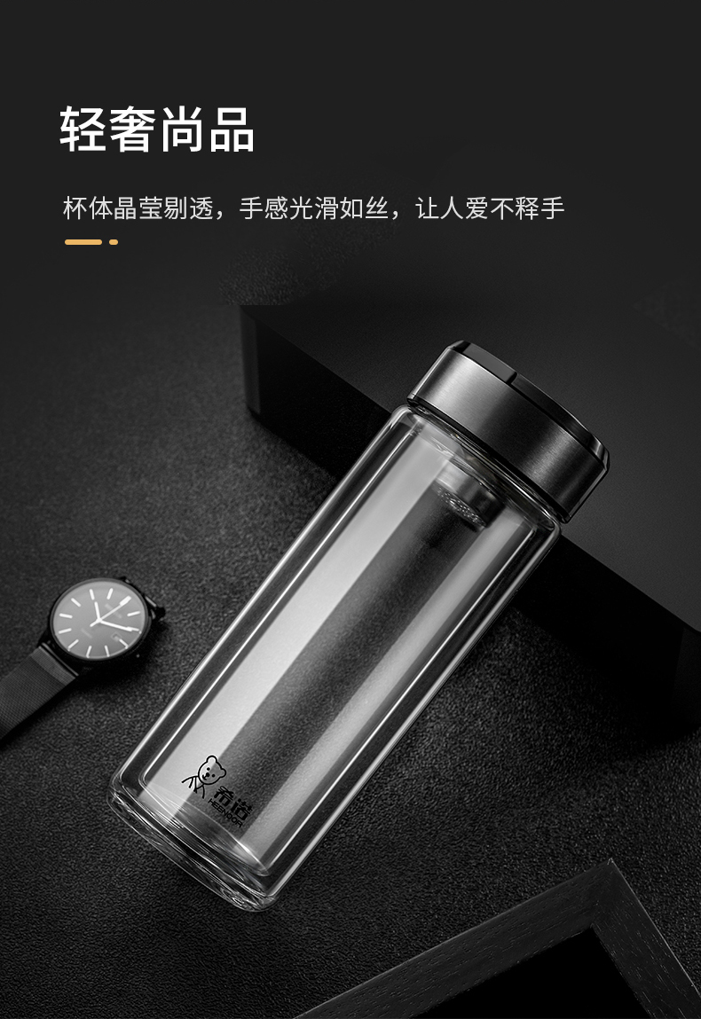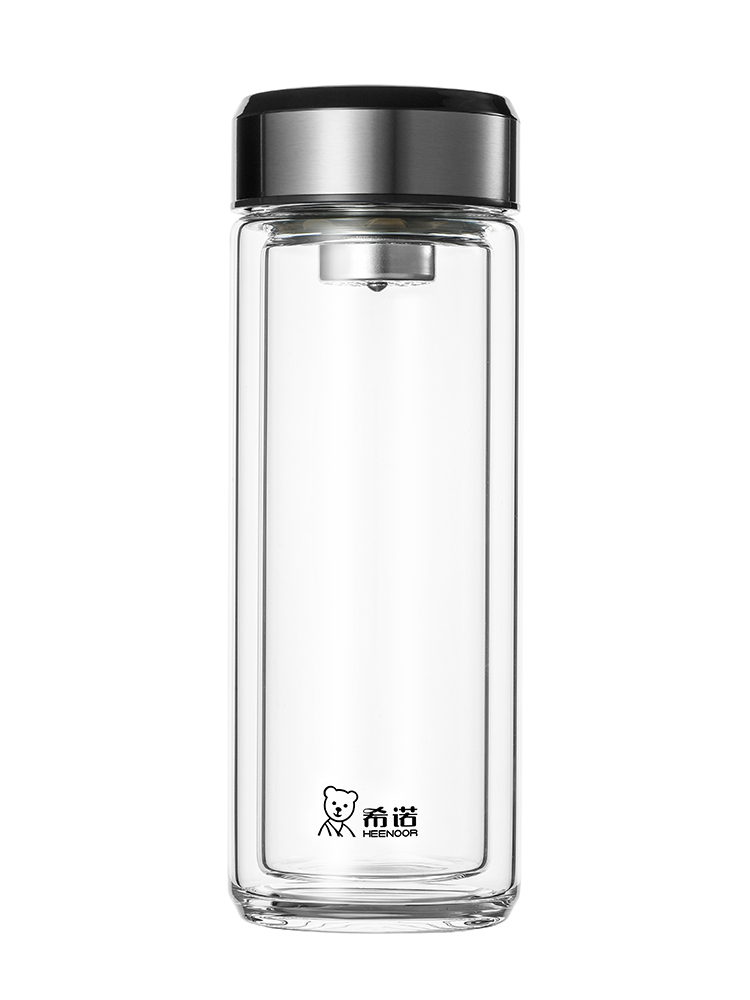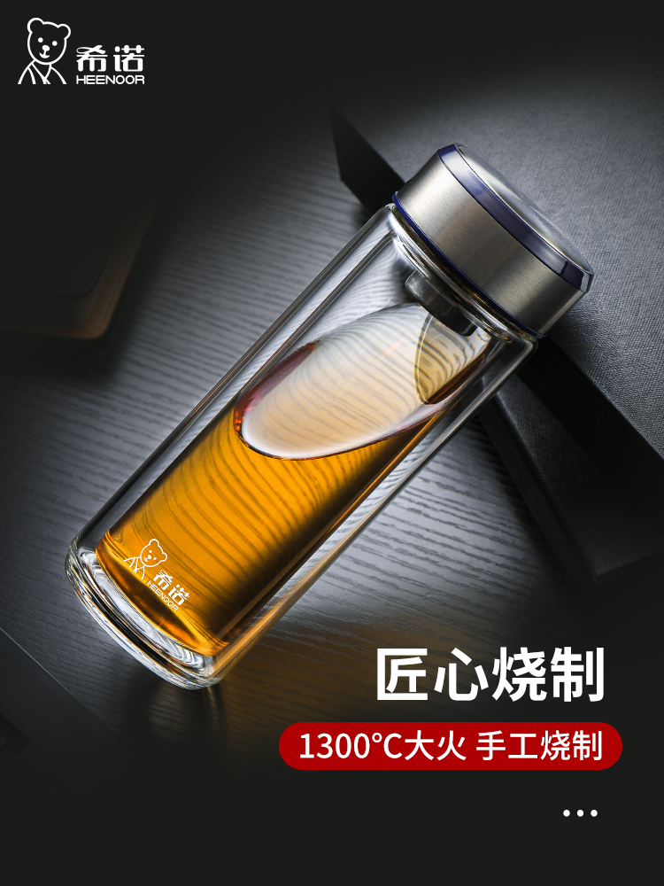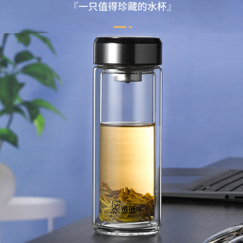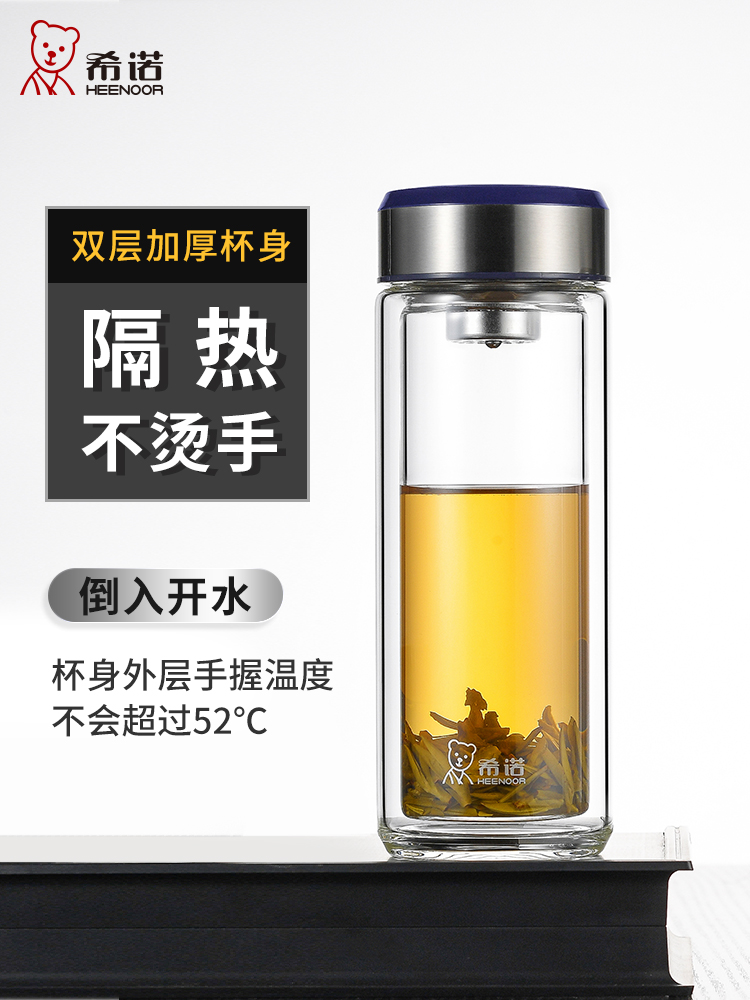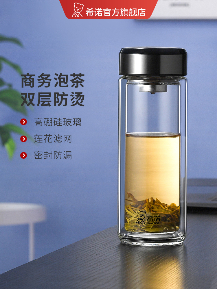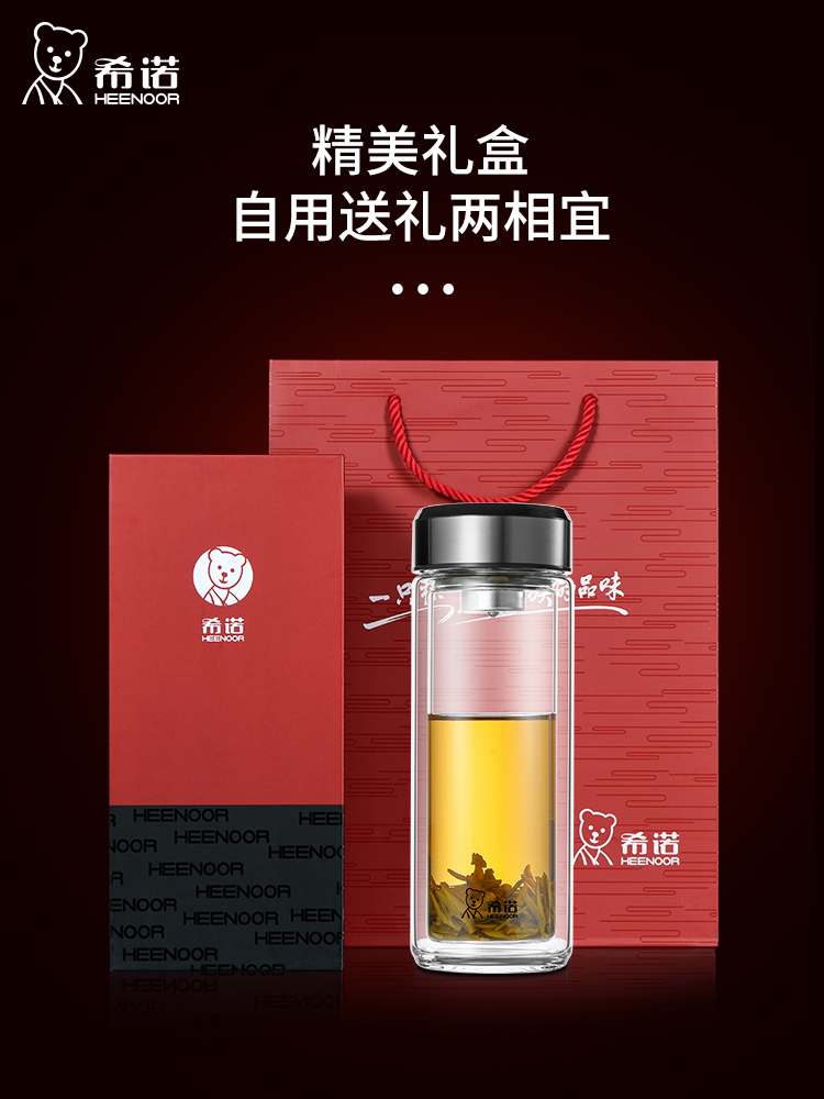希諾雙層玻璃杯茶水分離水杯男家用透明過濾泡茶杯子高檔送禮商務