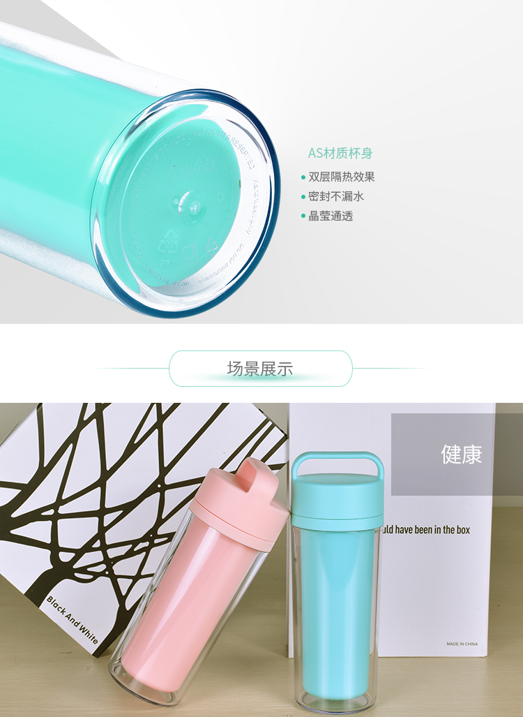 運動水杯 便攜防漏隨手杯 學生杯子 情侶創意水杯子 雙層塑料杯子 300ml