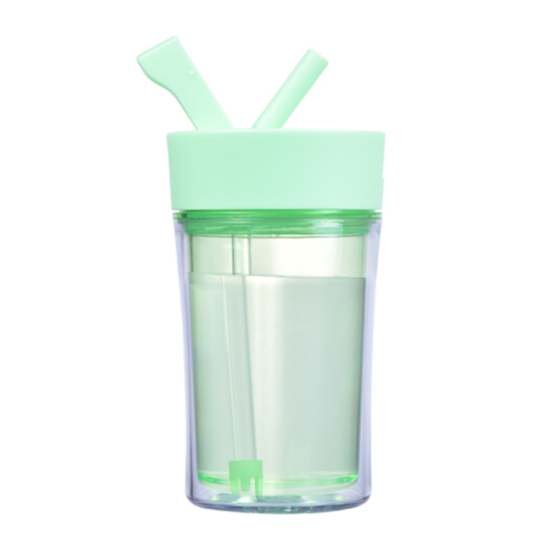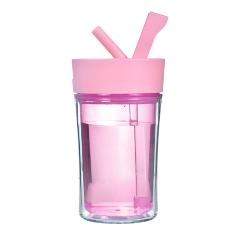 情侶咖啡杯創意水杯 辦公水杯 咖啡杯子 雙層塑料杯子 隨手杯 吸管杯