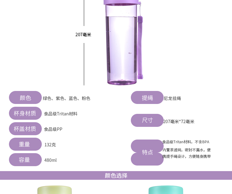 創(chuàng)意塑料杯子 便攜水杯 茶杯 學(xué)生杯子帶茶隔 運(yùn)動(dòng)水杯 tritan隨手杯 480ml