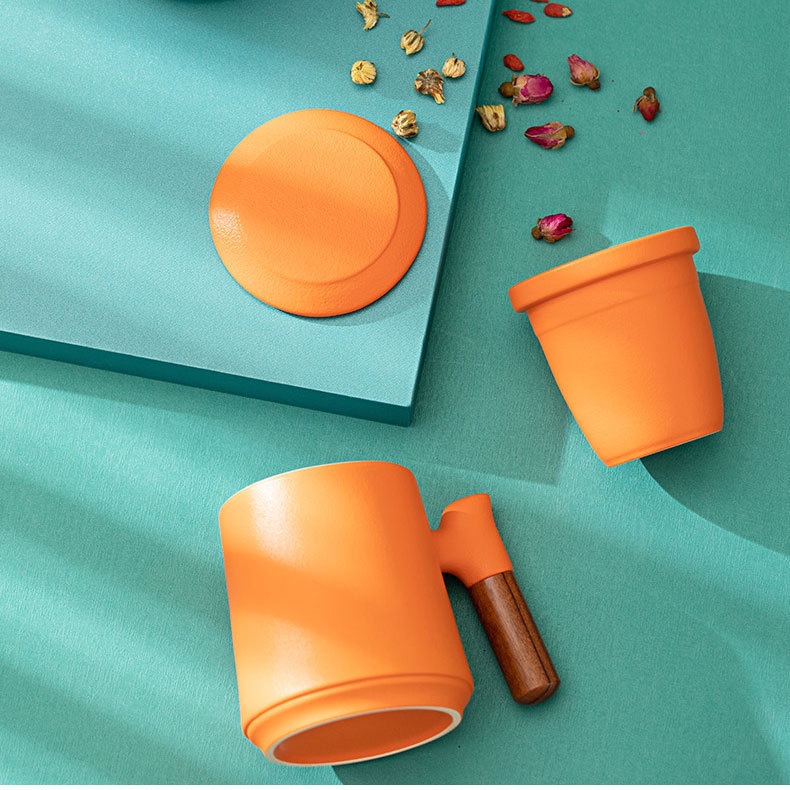陶瓷馬克杯帶蓋過濾辦公杯個人杯茶水分離杯公司送禮禮盒刻字LOGO